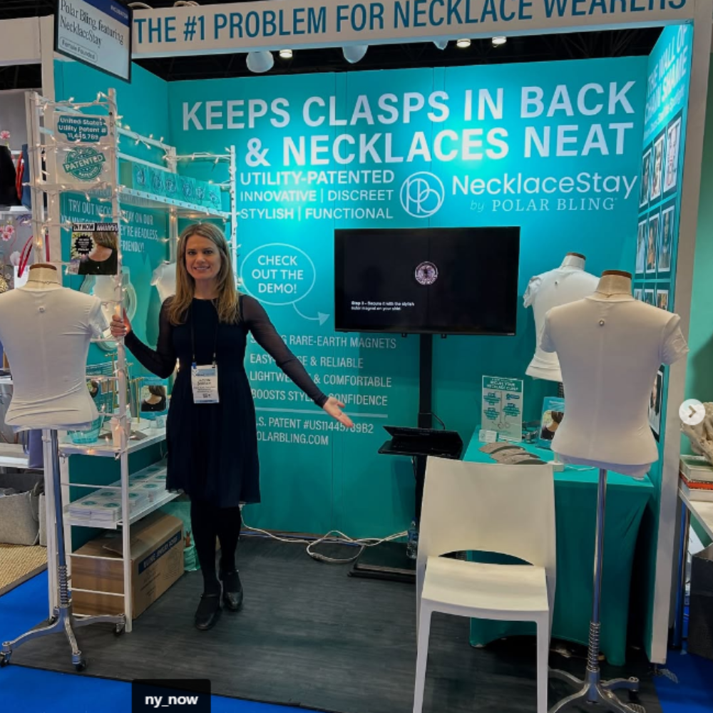 In February 2025, NecklaceStay debuted at the NY NOW show at the Javits Center. It was chosen as one of three finalists for the Trailblazer Innovation Awards and featured in the NellyRodi Future Trends Gallery under the “Up Simplicity” theme. Hearing people call it “such a smart idea” made every year of hard work worth it.
